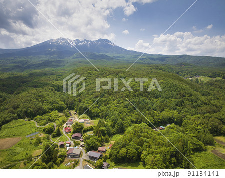 開田高原御嶽山展望台からの御嶽山の雄大な眺め 長野県木曽町(ドローンによる空撮)