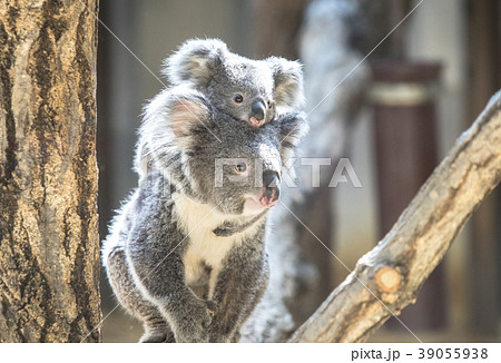 赤ちゃんコアラをおんぶする母コアラ