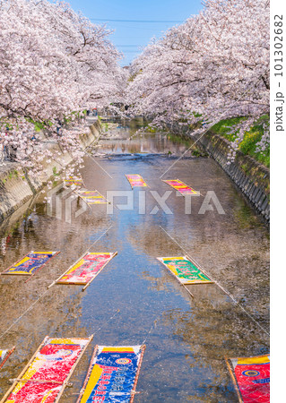 岩倉市 五条川の桜並木の風物詩 のんぼり洗い