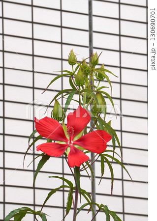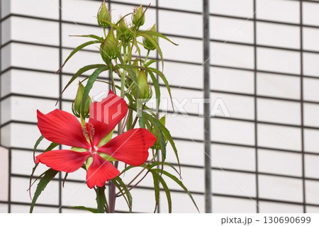 真っ赤なモミジアオイの花