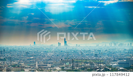 神奈川県秦野市の弘法山の西側の道から北側の眺望(大山,二ノ塔,秦野市曽屋など)