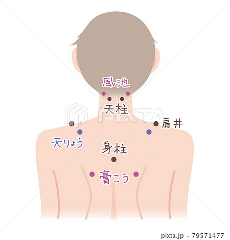 わかりやすい肩と背中のツボの図表イラスト素材・背面