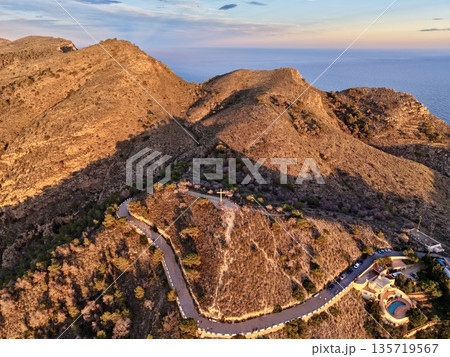 Picturesque Seaside Route Through Hills, Beautiful Winding Path Along Oceanfront Properties