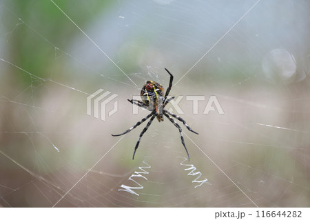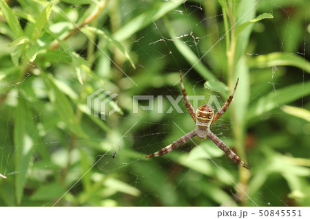 コガネグモ 蜘蛛の巣を張る蜘蛛 イメージ素材