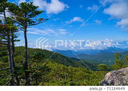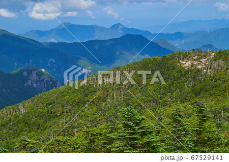 山梨(長野)の前国師岳山頂付近から南西側(水晶峠,太刀岡山,中津森)方面