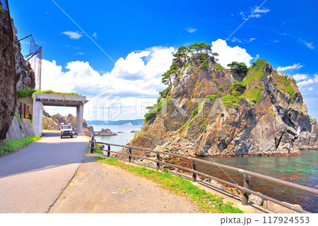 東北・小袖海岸・釣鐘堂の風景、海岸線のドライブのイメージ・岩手県久慈市(2)