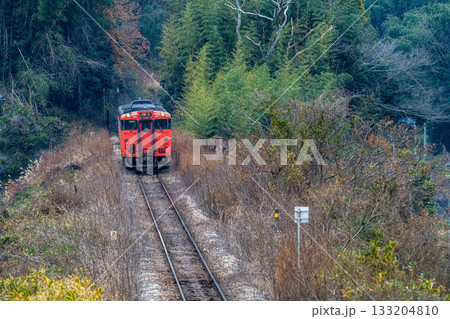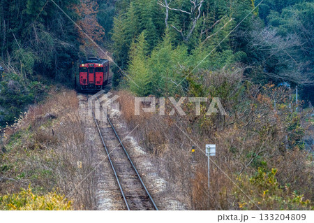 冬の坂を上る津山線岡山駅行き快速列車ことぶき5 岡山県岡山市北区