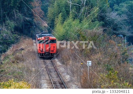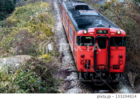 秋の花咲く津山線を走る津山駅行き快速列車ことぶき 岡山県岡山市北区
