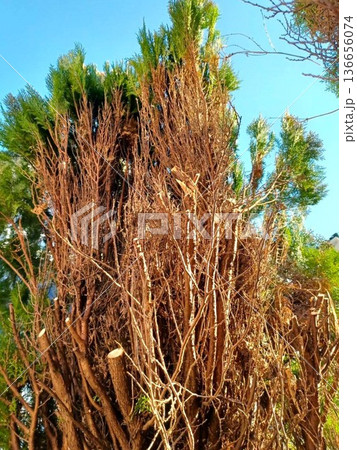 剪定したコノテガシワ(蒸れて枯れた内側)