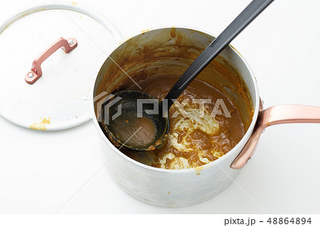 鍋底が見える残り少ないカレー(白背景)