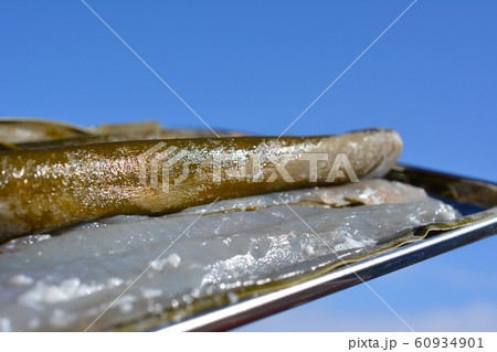 カレイの5枚おろし昆布締め、締めて1日目、刺身、手作り、塩こうじ、家庭料理、和食、食材イメージ素材
