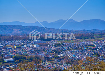 神奈川県秦野市の弘法山公園から南西側の眺望(秦野市市街,箱根の山々など)