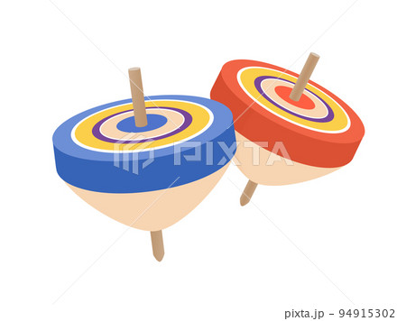 赤と青のカラフルなこま お正月の縁起物のイラスト素材