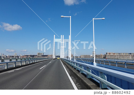 多摩川の風景 ブルー 是政橋 これまさばし 青空