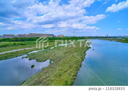 多摩川の風景 青空 是政橋 これまさばし 武蔵野線