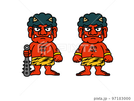 大きく口を明けた赤鬼と青鬼のイラストセット(水彩風)