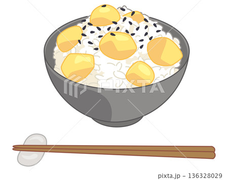 栗ご飯のイラスト(お箸と箸置きの追加)