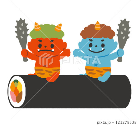 節分の恵方巻に乗る赤鬼と青鬼
