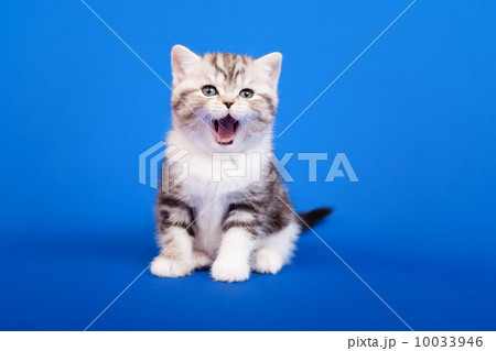Scottish straight kitten. Purebred cat who pose for the camera