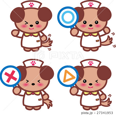 アニマルナース可愛い動物の看護師さんイヌさん〇×△足跡