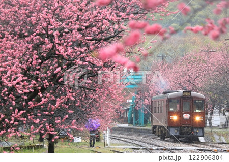 わたらせ渓谷鐵道「花桃の並木を走る花桃号」