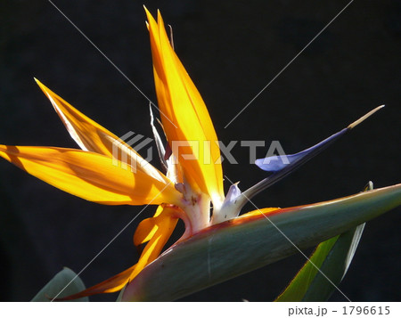 極楽鳥花、黒バック、縦図