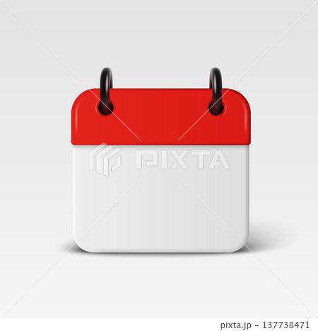 Vector 3d Blank Calendar Icon with Red Header, Front View. Minimal Date Planner Page with Rings. Schedule and Appointment Symbol. Reminder and Event Organizer Design Element, Vector Illustration
