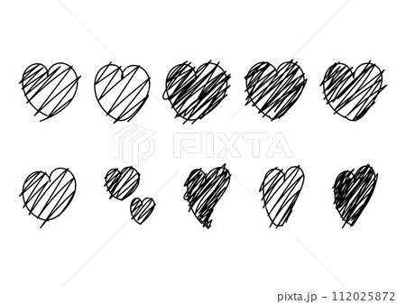 線で塗ったぐちゃぐちゃのハート素材セット