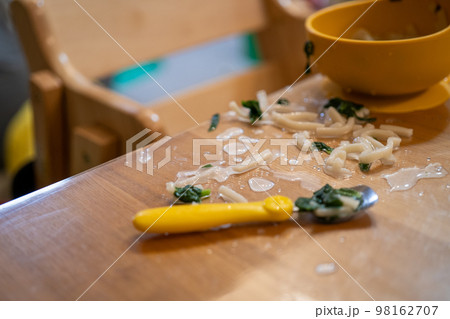 テーブルに散らかったうどん