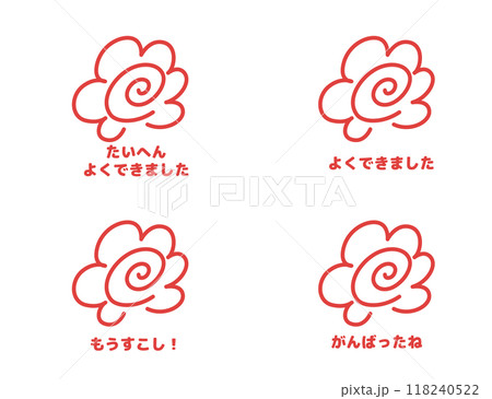 赤ペンで描いた手書きのはなまるイラストセット(先生・保育・学校向け)