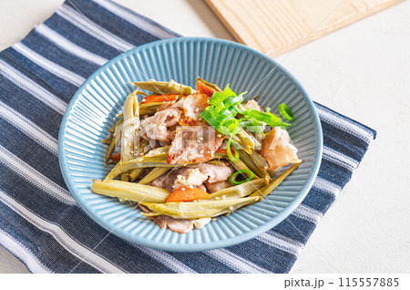 イタドリと豚肉の中華風炒め