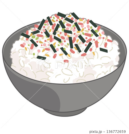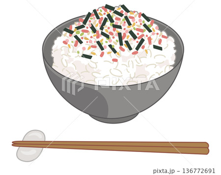 鮭と海苔のふりかけご飯のイラスト