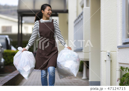 ゴミ袋を持つ女性