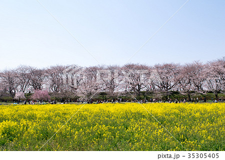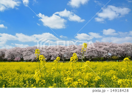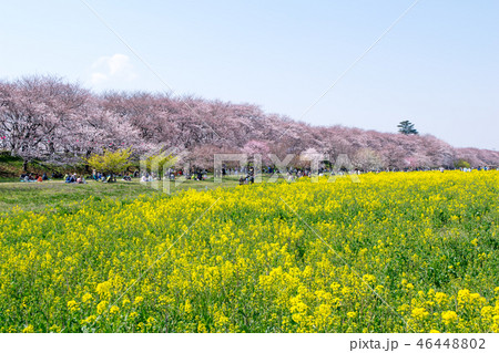 埼玉県 幸手権現堂桜堤(さってごんげんどうさくらつつみ) 千本桜と菜の花畑