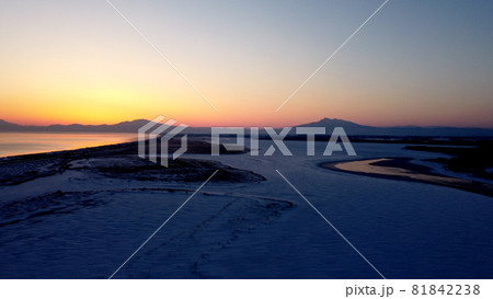 網走の冬の濤沸湖と斜里岳の夜明け
