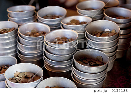 涅槃仏寺院での賽銭の小銭
