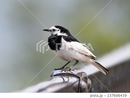 田んぼの脇で辺りをうかがうセグロセキレイ