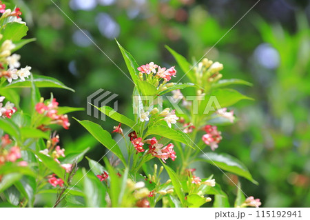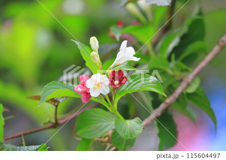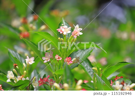 白からうすいピンクに変色する箱根空木(ハコネウツギ)