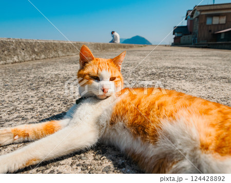 道の上でくつろぐ野良猫 香川県の佐柳島