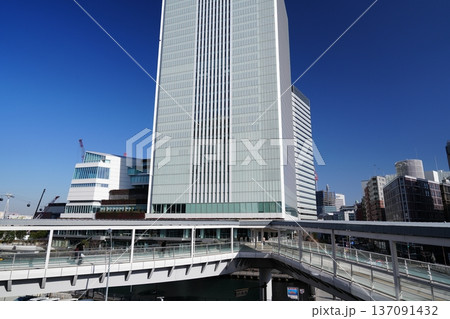 日本の横浜都市景観 横浜市新市庁舎やさくらみらい橋、辨天橋などを望むを望む