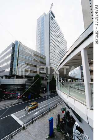 日本の横浜都市景観 桜木町駅 新南口前から横浜市役所や桜木町駅入口などを望む。車無し=8月17日