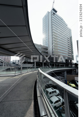 JR桜木町駅新南口前の風景 さくらみらい橋と横浜市庁舎のビルディング