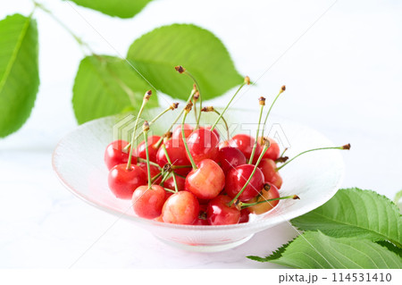 グラスの器に入ったさくらんぼ 山形県産佐藤錦