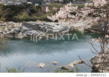 吉野川中流域、春の「美濃田の淵」(徳島県東みよし町)