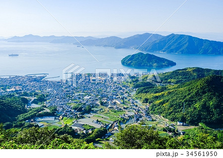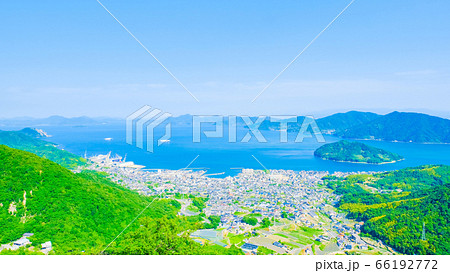 真夏の瀬戸内海の風景 広島県三原市筆影山・竜王山