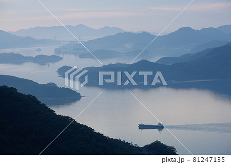 早朝の竜王山からのしまなみの眺望 広島県三原市