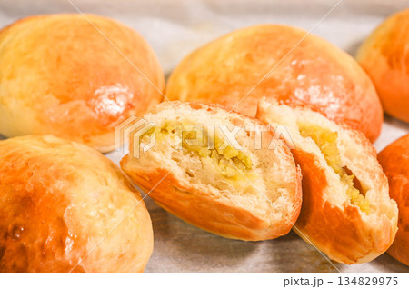 サツマイモをイメージした菓子パン【白背景・切り抜き】