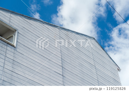 古びた灯油タンクと住宅