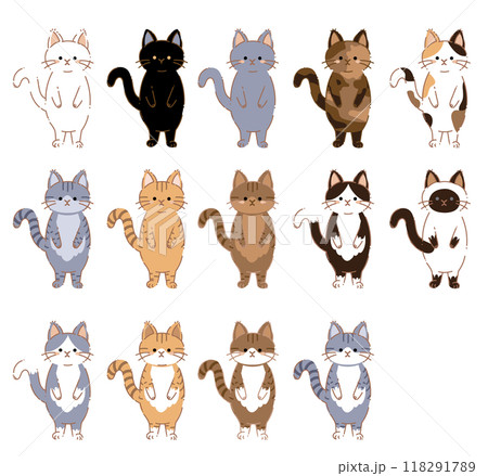 【色つき】猫の色んな姿勢と表情のイラストセット