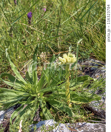The aloe vera in the garden is blooming, and its flower color is yellow-green.